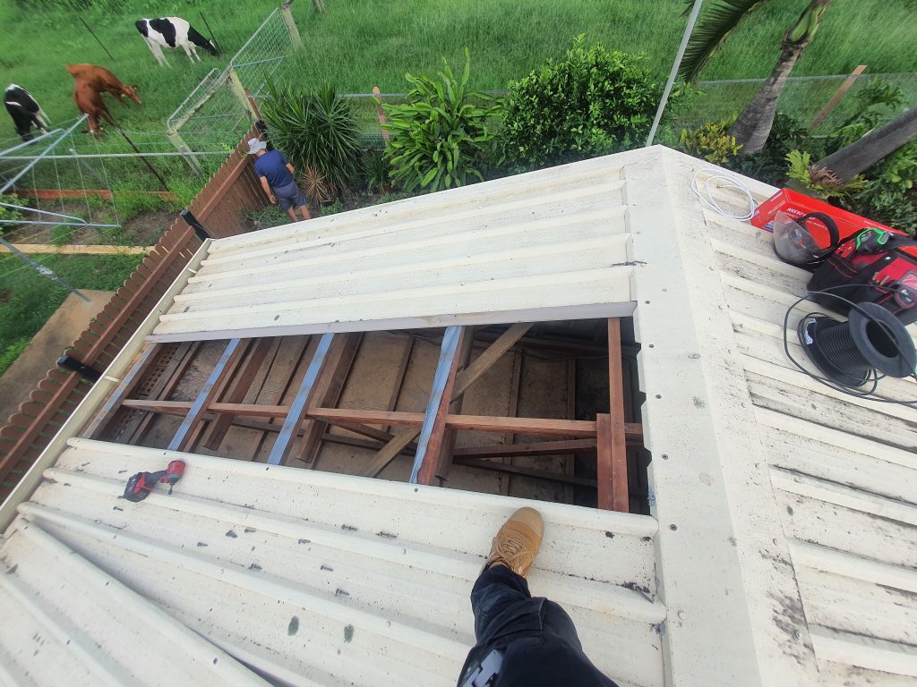 Due to low style ceilings in our customers premisses they didn’t have a man hole which resulted in us taking some roof sheets off to gain access to install new TV Antenna Cabling. We installed new Matchmaster RG6 Quad Shield tv cabling throughout the customers house along with a new Matchmaster TV VHF Antenna and Amplifier.
